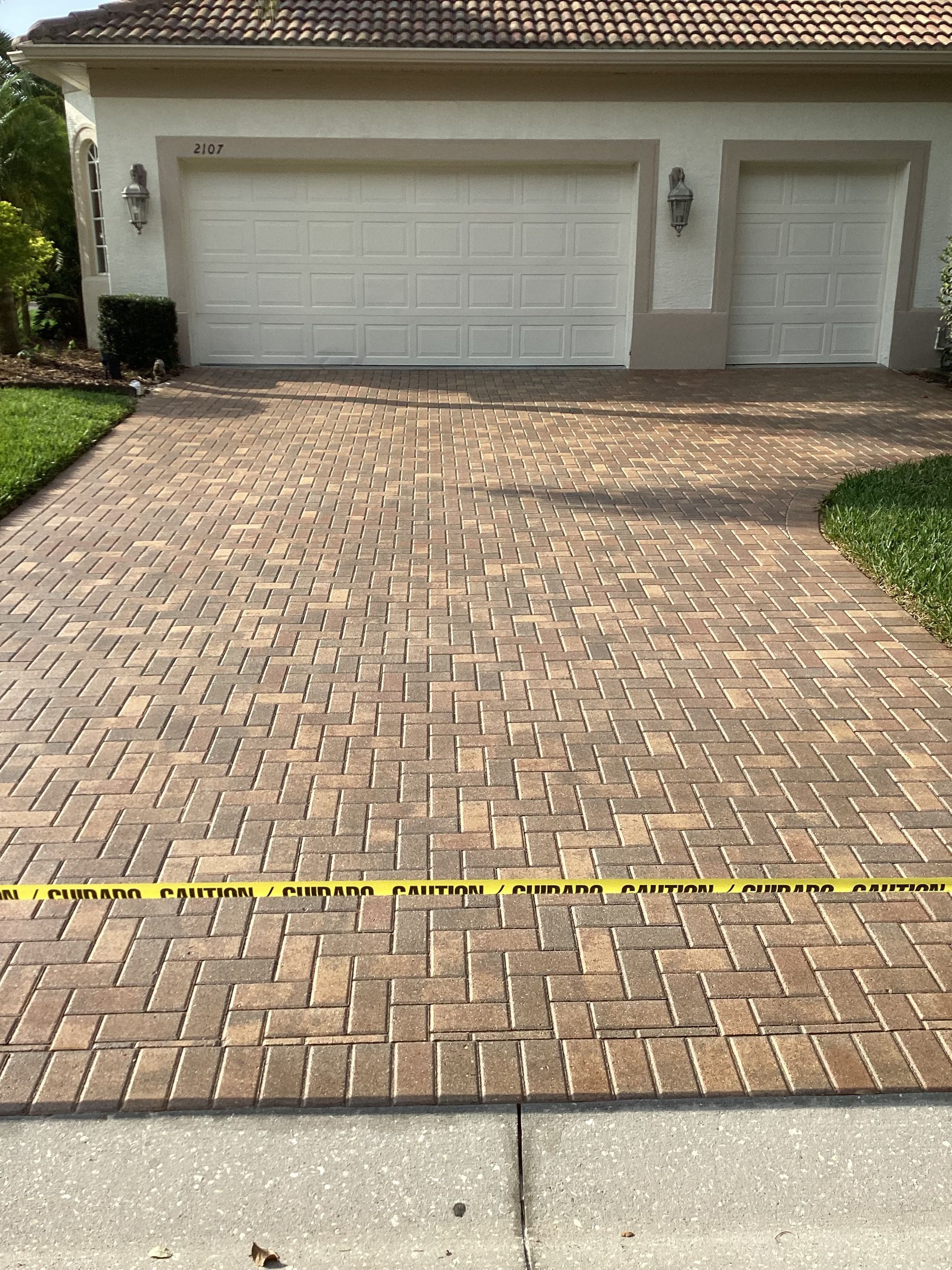 Our premium driveway sealing solutions are crafted to protect your investment from Florida’s harsh weather, daily wear, and environmental stress. Using top-grade materials and proven techniques, our skilled team ensures every paver is expertly sealed — shielding your surface from moisture, UV rays, stains, and more. The result? A cleaner, more durable driveway that enhances your home’s beauty and value.